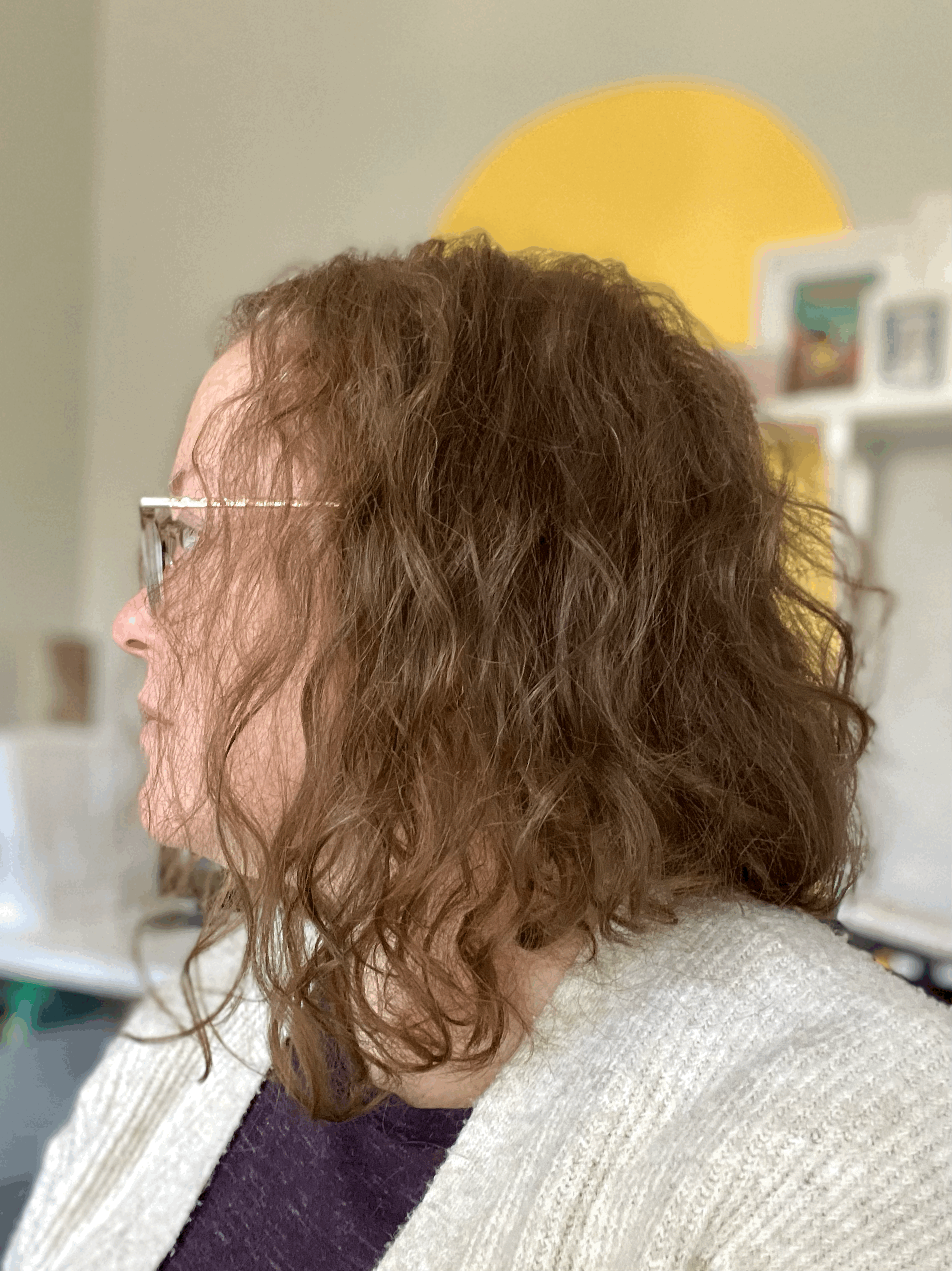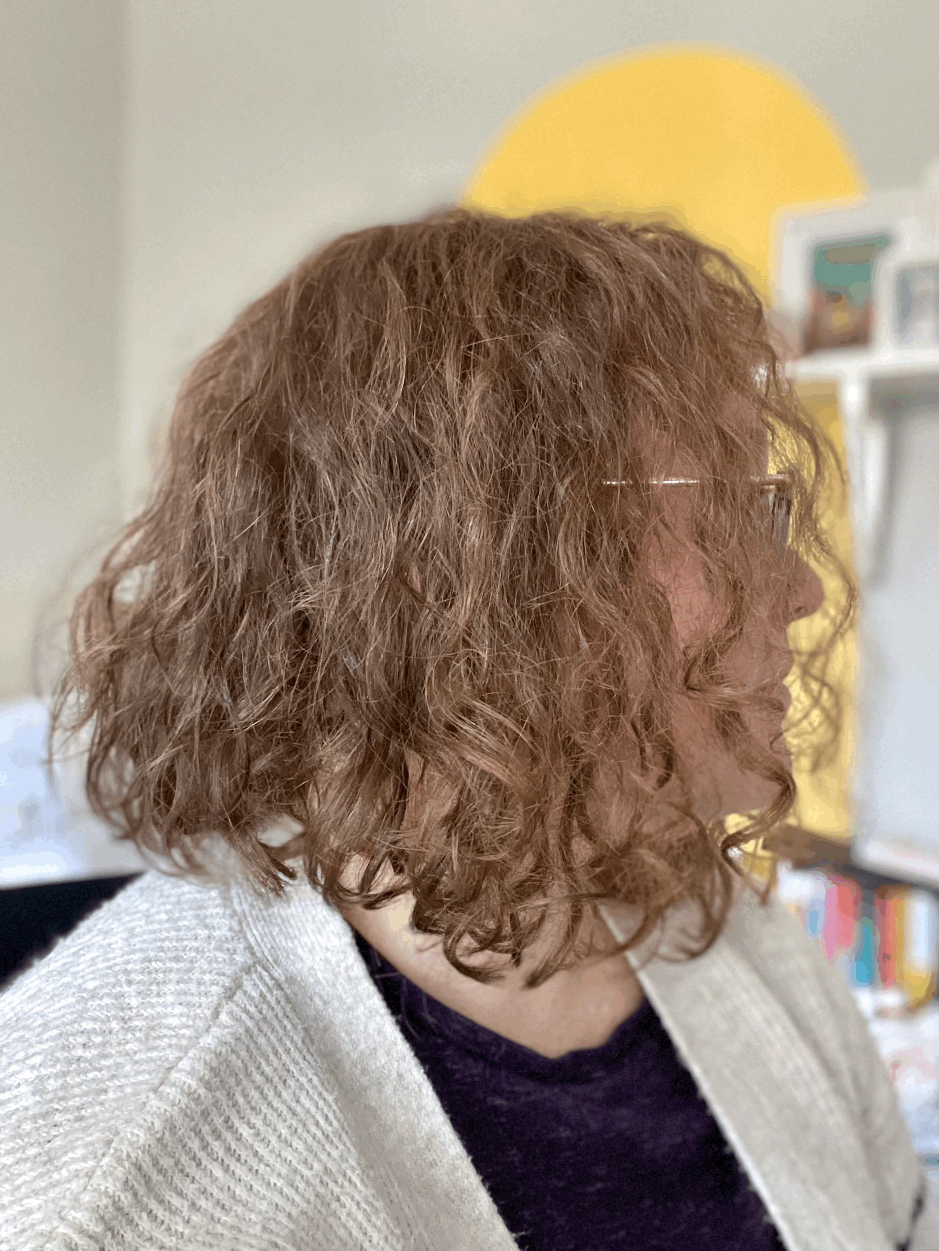 When we brunched last weekend, Kelli expressed that she wanted to have more volume in her hair and wanted her curls to come back. It had been several months since her last styling and there'd been some health concerns in that time, so we were dealing with a combination of very curly but damaged hair, that was also very fine with some thinning. I thought about doing a blunt (0º) cut for her but as I had her in the chair, I realized her hair was too fine to do a lot of layering; and that's when I proposed doing a 45º cut to remove some weight from her hair to help the curls pop again while also graduating the cut with a few layers to give her hair some volume. Kelli was my first-ever styling client, so I was just happy that it went to plan and she's happy with the end result. Everyone knows I'm beginning and there's significant risk with having a noob cut your hair. I am glad I exceeded expectations, including my own.
