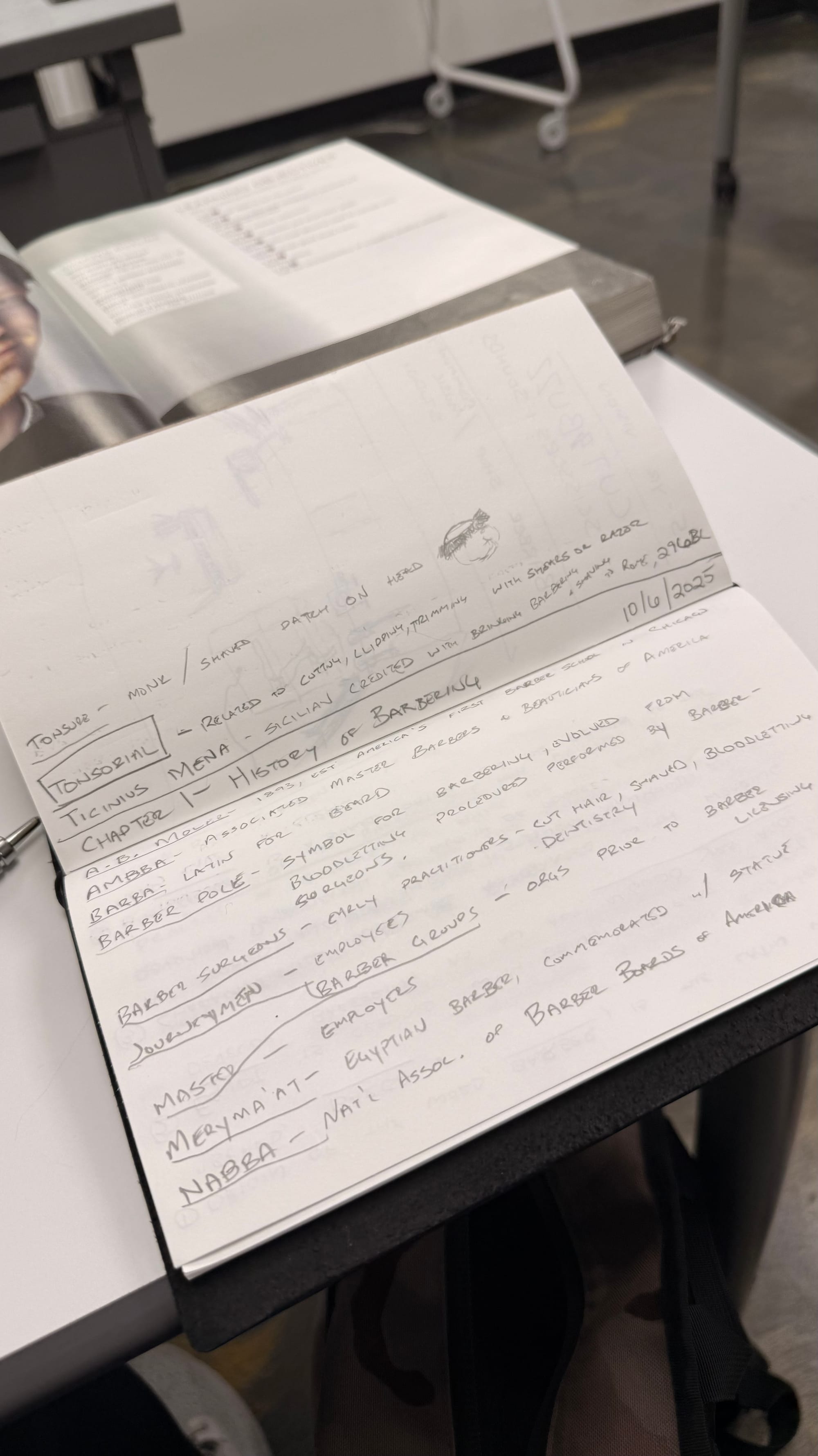 It's Saturday morning. Norrin is doing a campus tour of DePaul University. I'm hanging in the student center one week into recovering from a stress-triggered gout flare-up. I wrapped a really solid first week of barber school yesterday. Everyday has been hitting the Milady Standard Barbering textbook, writing out terms and answering chapter summary questions; filling out worksheet packets on the chapters. I aced my first test on the History of Barbering. I received my equipment. Yesterday I finished the week with getting into Infection Control, which is required before I'm able to start on the shop floor. Next week should see me do just that :)